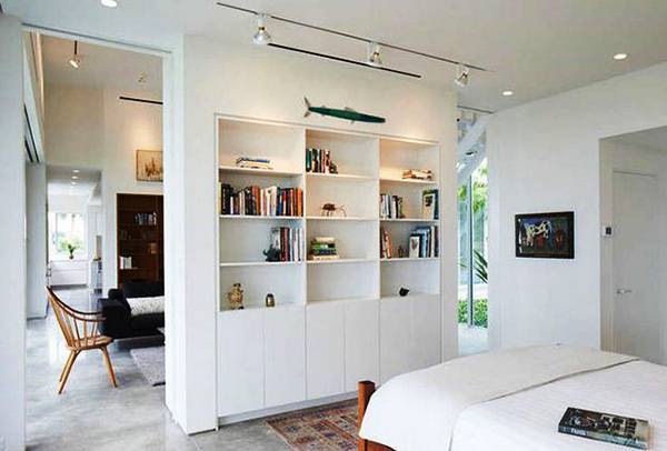 2.你也可以用柜台作为客厅来改变卧室的隔断。这种装饰也很完美。它也是装饰品之一。将客厅变成卧室的方法通常以小单元的形式出现。使用计数器分区不会影响客厅的视线,所以使用计数器分区也很受欢迎。